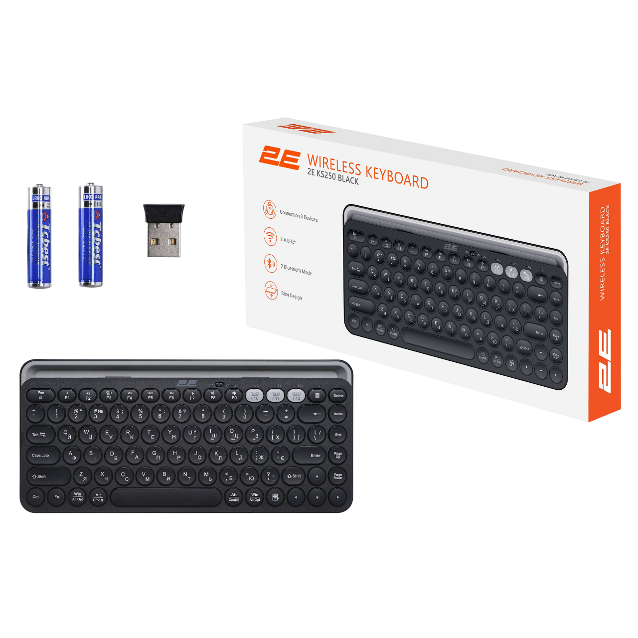 Клавіатура бездротова 2E KS250 WL BT Black (2E-KS250WBK_UA)